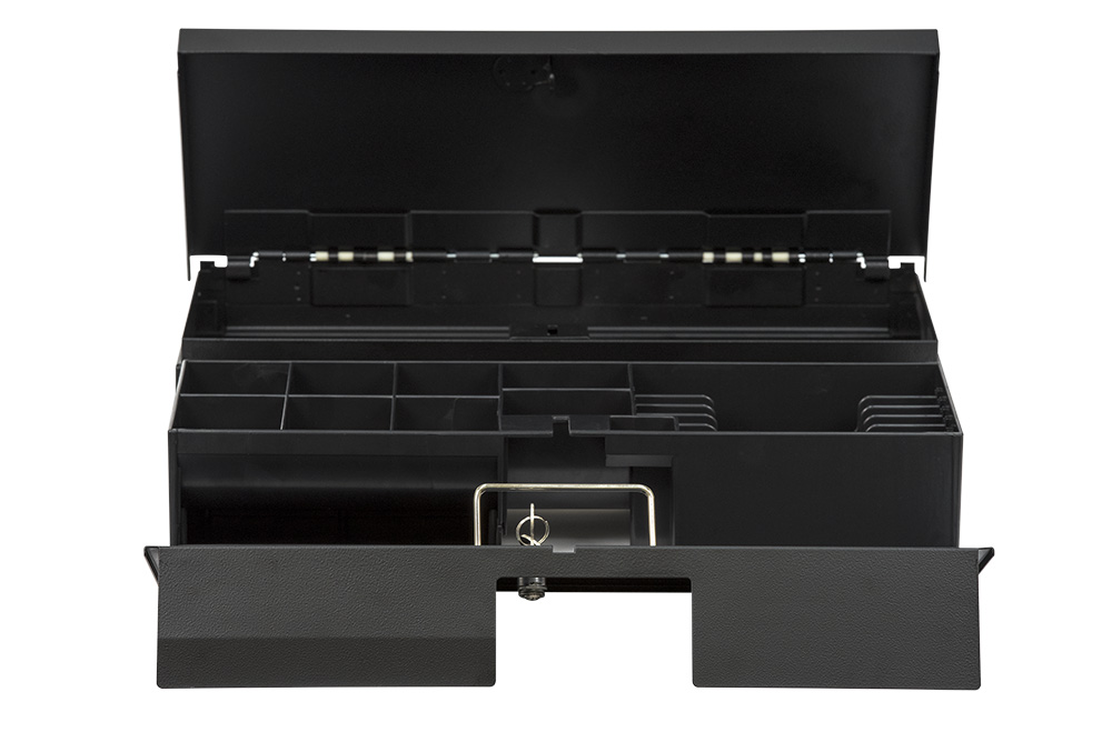 Для хранения банкнот предусмотрено 6 отделений, размеры которых можно адаптировать под ширину купюр. Для хранения монет – 8 отделений. Лоток с купюрами и монетами может полностью выниматься из денежного ящика для инкассации. Наличие отделения для чеков и счетов обеспечит сохранность финансовых документов и порядок на рабочем месте кассира.
