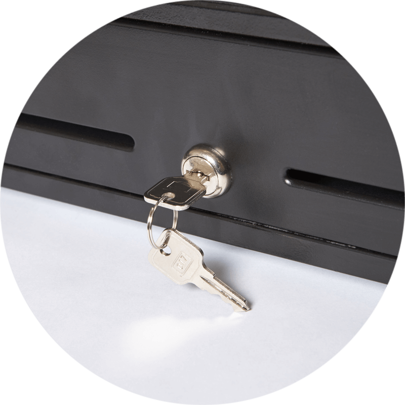Трехпозиционный электромеханический замок рассчитан на 25 комбинаций ключей, что исключает несанкционированные открытия и повышает безопасность при одновременной установке нескольких ящиков в одной торговой точке.