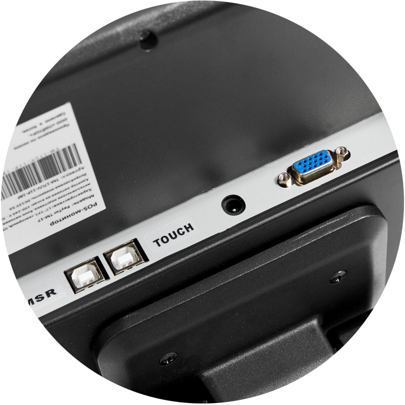 Благодаря отсутствию фронтальной рамки проекционно-емкостный экран надежно защищен от скопления пыли, грязи и влаги. Встроенный ридер магнитных карт на 1–3 дорожки идёт в базовой комплектации. Все кабели можно завести в подставку, чтобы сохранить эстетику внешнего вида.