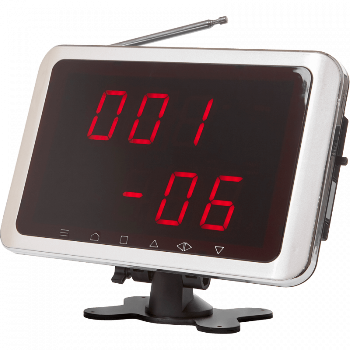 Подходит для установки в общем зале либо для присвоения конкретного номера представителю обслуживающего персонала — например, официанту, банковскому специалисту и т. д. Программируется отображение в зависимости от нужд владельца, можно задавать до 12 вариантов различных мелодий оповещения.