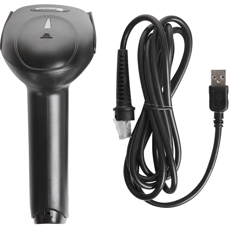 Несмотря на доступный ценник, устройство отличается надежностью и «выносливостью». Выдерживает падения с высоты 1,8 метров.О считывании штрих-кода оповещает с помощью звука и световой индикации. Подключается с помощью съемного USB-провода (кабель в комплекте).